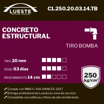 Concreto Estructural Clase 1, FC = 250, TMA = 20, Edad = 28, Rev = 14, Tiro = Bombeo