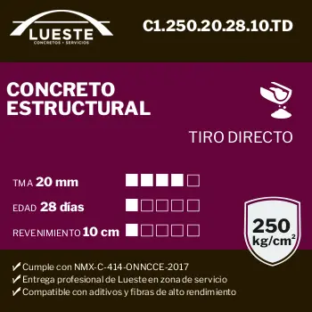 Concreto Estructural Clase 1, FC = 250, TMA = 20, Edad = 28, Rev = 10, Tiro = Directo