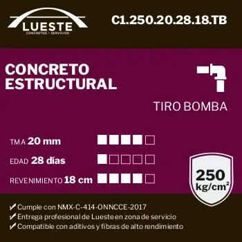 Concreto Estructural Clase 1, FC = 250, TMA = 20, Edad = 28, Rev = 18, Tiro = Bombeo