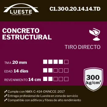 Concreto Estructural Clase 1, FC = 300, TMA = 20, Edad = ART 14 al 80%, Rev = 14, Tiro = Directo