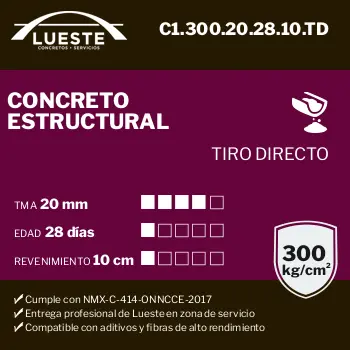 Concreto Estructural Clase 1, FC = 300, TMA = 20, Edad = 28, Rev = 10, Tiro = Directo