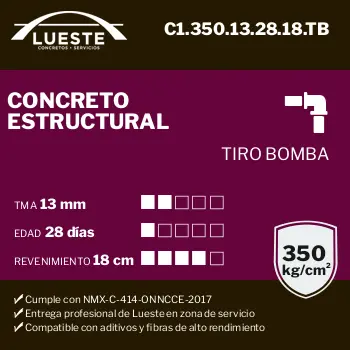 Concreto Estructural Clase 1, FC = 350, TMA = 13, Edad = 28, Rev = 18, Tiro = Bombeo