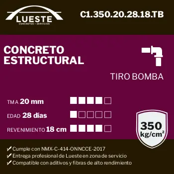 Concreto Estructural Clase 1, FC = 350, TMA = 20, Edad = 28, Rev = 18, Tiro = Bombeo