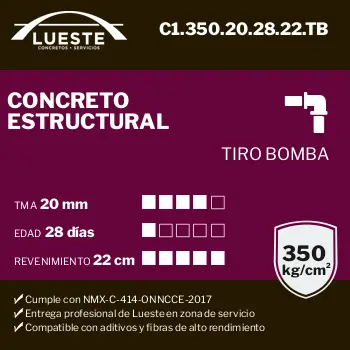 Concreto Estructural Clase 1, FC = 350, TMA = 20, Edad = 28, Rev = 22, Tiro = Bombeo