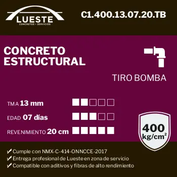 Concreto Estructural Clase 1, FC = 400, TMA = 13, Edad = ART 07 al 80%, Rev = 20, Tiro = Bombeo