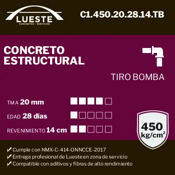 Concreto Estructural Clase 1, FC = 450, TMA = 20, Edad = 28, Rev = 14, Tiro = Bombeo