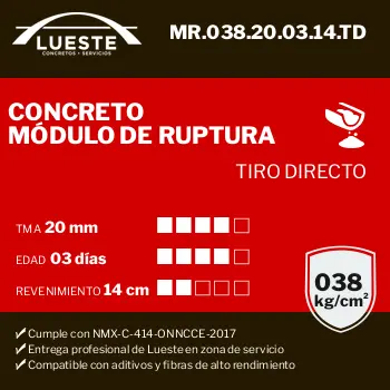 Concreto MR (Módulo de Ruptura), FC = 038, TMA = 20, Edad = ART 03 al 80%, Rev = 14, Tiro = Directo