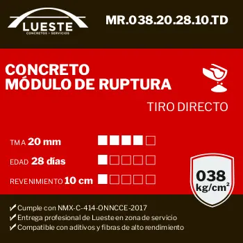 Concreto MR (Módulo de Ruptura), FC = 038, TMA = 20, Edad = 28, Rev = 10, Tiro = Directo