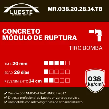 Concreto MR (Módulo de Ruptura), FC = 038, TMA = 20, Edad = 28, Rev = 14, Tiro = Bombeo