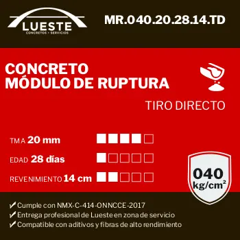Concreto MR (Módulo de Ruptura), FC = 040, TMA = 20, Edad = 28, Rev = 14, Tiro = Directo