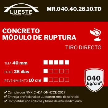 Concreto MR (Módulo de Ruptura), FC = 040, TMA = 40, Edad = 28, Rev = 10, Tiro = Directo
