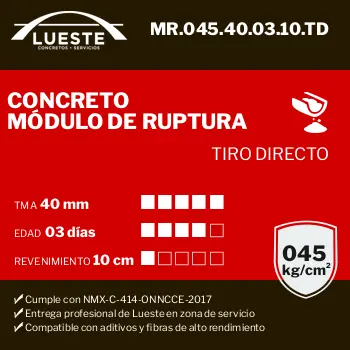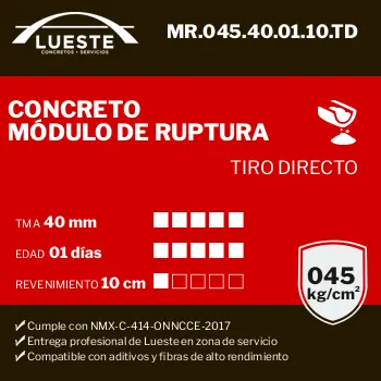 Concreto MR (Módulo de Ruptura), FC = 045, TMA = 40, Edad = 28, Rev = 14, Tiro = Directo