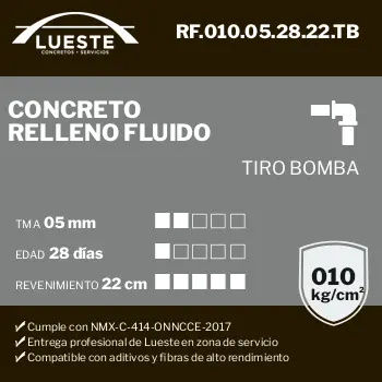Concreto RF (Relleno Fluido), FC = 010, TMA = 05, Edad = 28, Rev = 22, Tiro = Bombeo