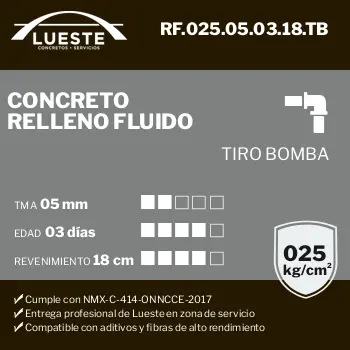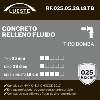 Concreto RF (Relleno Fluido), FC = 025, TMA = 05, Edad = 28, Rev = 18, Tiro = Bombeo