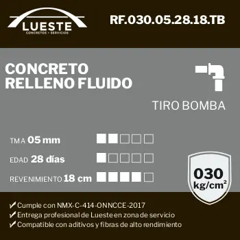 Concreto RF (Relleno Fluido), FC = 030, TMA = 05, Edad = 28, Rev = 18, Tiro = Bombeo