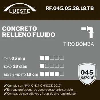 Concreto RF (Relleno Fluido), FC = 045, TMA = 05, Edad = 28, Rev = 18, Tiro = Bombeo